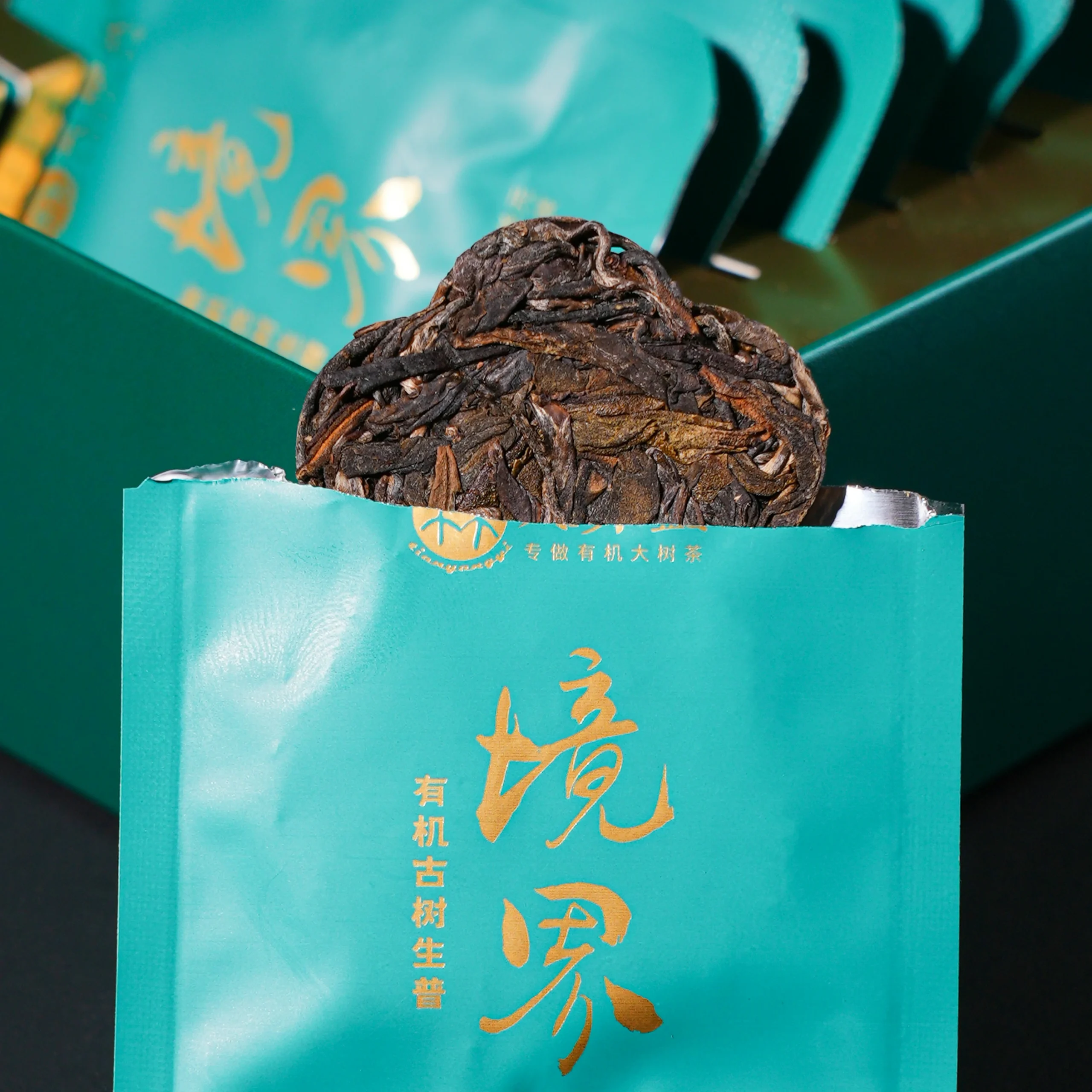 Realm Organic Raw Pu-erh: Tang Dynasty’s Silver City Legacy | UNESCO Reserve’s Honeyed Vitality – Zhuangyuan Flower Cake This 2024 spring harvest hails from the cloud-veined heart of Jingdong’s UNESCO Twin Nature Reserves (Tang Dynasty “Yinsheng” tea lands), where wild tea forests thrive in volcanic soil at 2,100m. Packaged in minimalist gift boxes containing 18 individually wrapped Zhuangyuan flower cakes (5g/cake, 90g total), each piece revives the Man Shu (860 AD) decree: “Tea grows in Yinsheng’s mountains.” Crafted from century-old arbor trees via zero-intervention organic methods, it embodies Pu’er’s primordial spirit.
