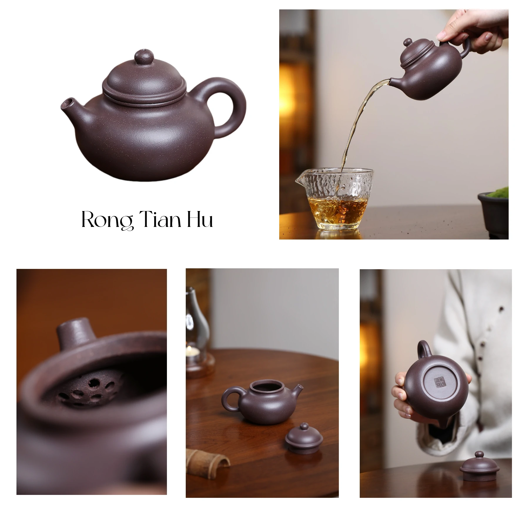 Rong Tian Hu (容天壶): Drawing meaning from “the sea embracing all rivers,” it symbolizes tolerance and grandeur. Its most prominent feature is the exceptionally full, spherical belly with strong presence, creating a substantial and majestic form. The vast space provides an optimal environment for tea leaves to unfurl and breathe, offering excellent heat and aroma retention. It is particularly suitable for teas requiring steeping or full flavor release, such as aged Pu’er, vintage dark tea, and Rock Tea (Yancha).