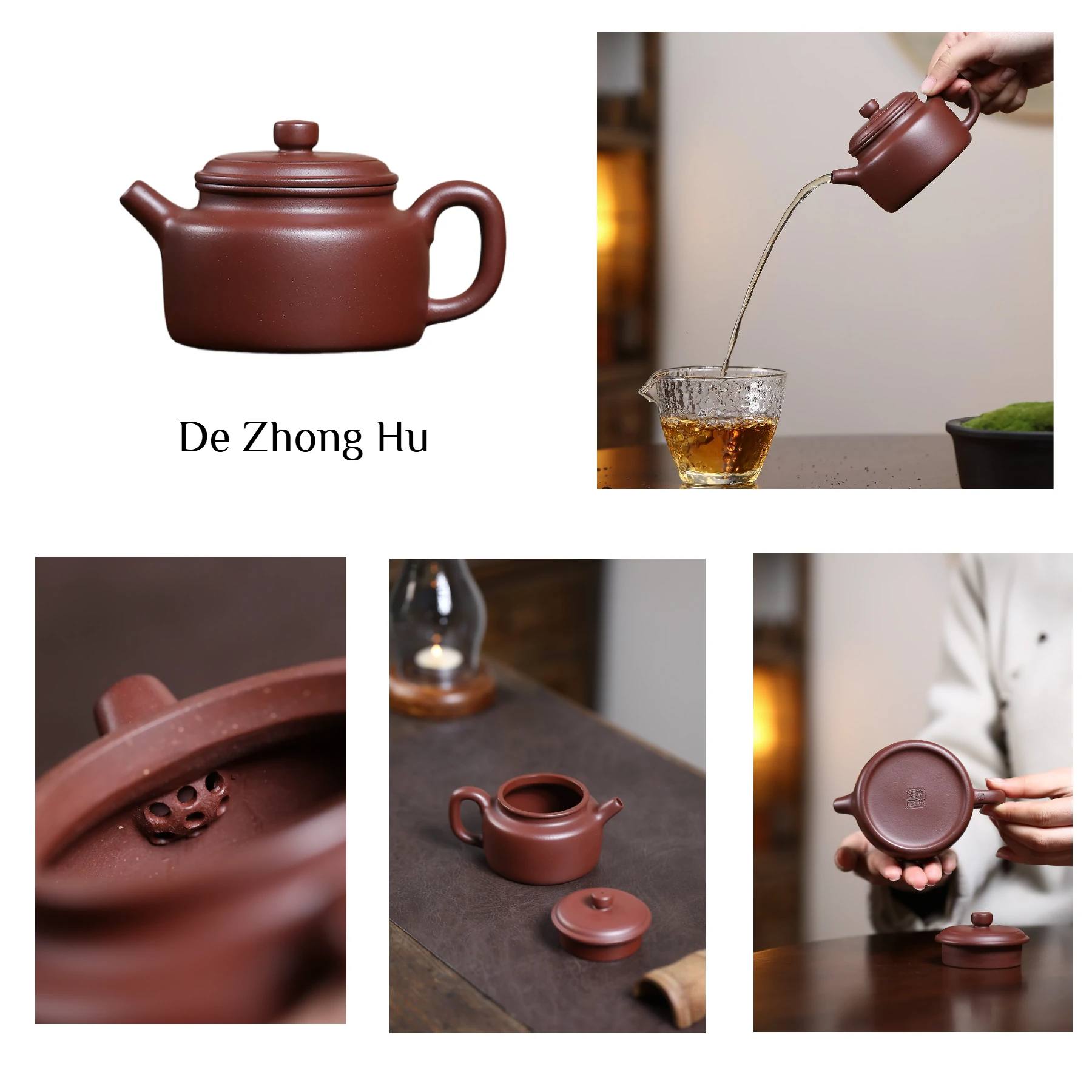 De Zhong Hu (德钟壶): Symbolizing the integrity and nobility of a nobleman, it represents the pinnacle of unadorned Yixing teapots. Its design is simple yet upright, with strong and fluid lines, and a stable body. The straight spout delivers powerful water flow with a clean break. The generous belly allows tea leaves to unfurl fully, effectively concentrating and elevating aromas. Its rapid pour makes it ideal for teas requiring thorough awakening like Pu’er and Oolong. Holding it feels like grasping the virtue of a nobleman.