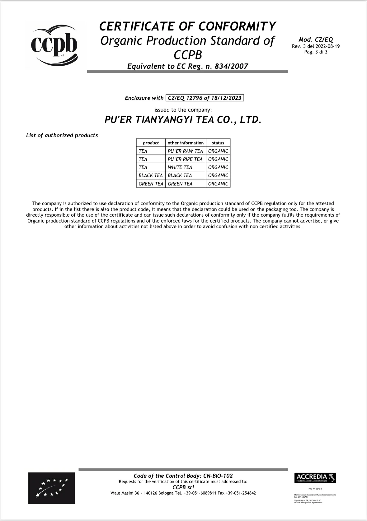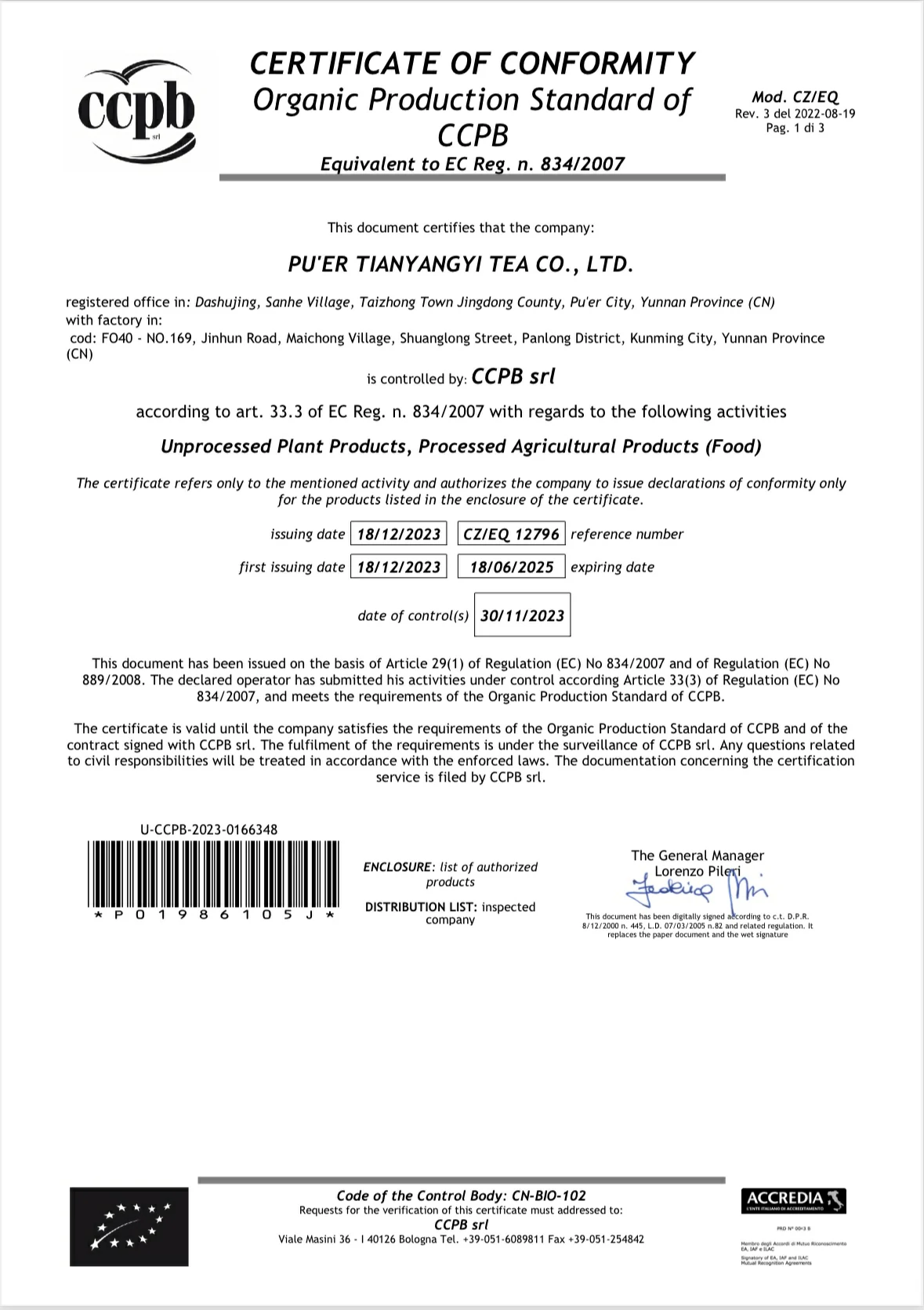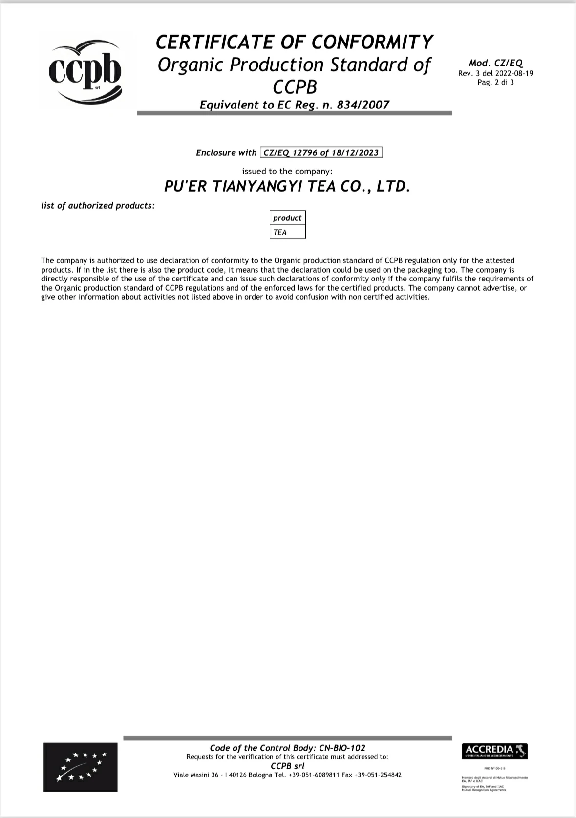 Entrusting Party: Pu’er Tianyangyi Tea Co., Ltd.