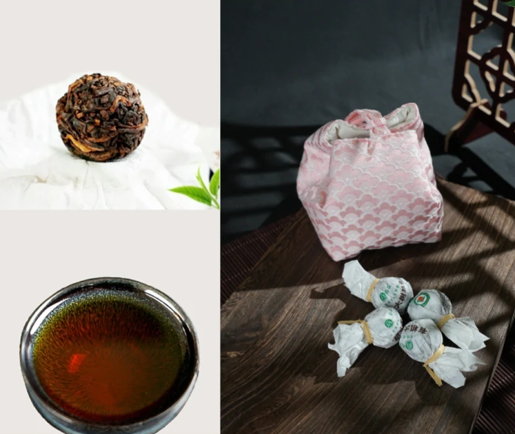 Wanshi Ruyi (May All Your Wishes Come True) Ripe Pu-erh Tea Each tea nugget weighs 6g net, individually wrapped in satin-printed silk fabric (dimensions: 9cm × 10cm), with a bulk specification of 24g per carton. Crafted from 2023-harvested tea leaves sourced from high-altitude organic tea gardens in Pu’er, Yunnan, this product adheres to stringent organic farming standards and full-process quality control.